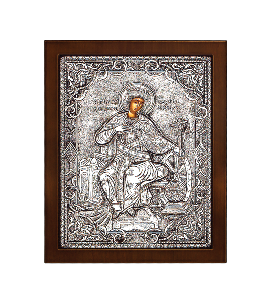 Αγία Αικατερίνα με φύλλο ασημιού 925° σε διάσταση : 27 x 22 εκ.