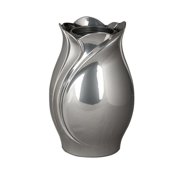 Ανθοδοχείο μνημείου από αλουμίνιο σε χρώμα βαμμένο χρώμιο και διάσταση : 30 x 18 εκ.