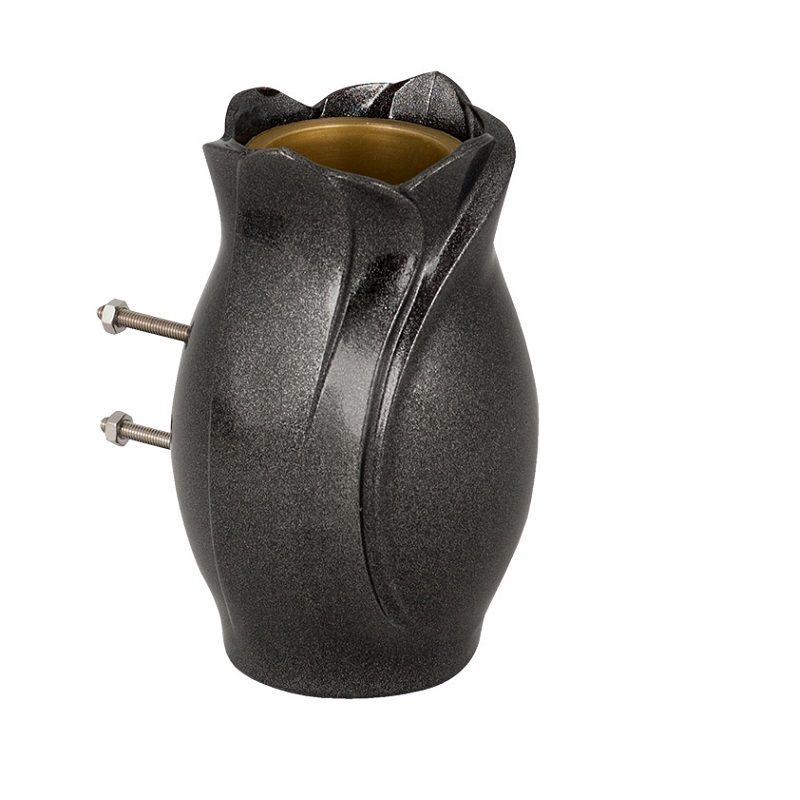Ανθοδοχείο μνημείου από αλουμίνιο επίτοιχο μικρό σε χρώμα ανθρακί και διάσταση : 12 x 10,5 εκ.