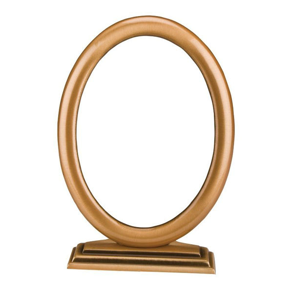 Κορνίζα μνημείου από ορείχαλκο (αδιάβλητο στις καιρικές συνθήκες) λεπτή οβάλ όρθια με βάση σε χρώμα οξυντέ και διάσταση : 13 x 18 εκ. ΣΗΜΕΙΩΣΗ: Οι κορνίζες μνημείου ΔΕΝ διαθέτουν τζάμι.