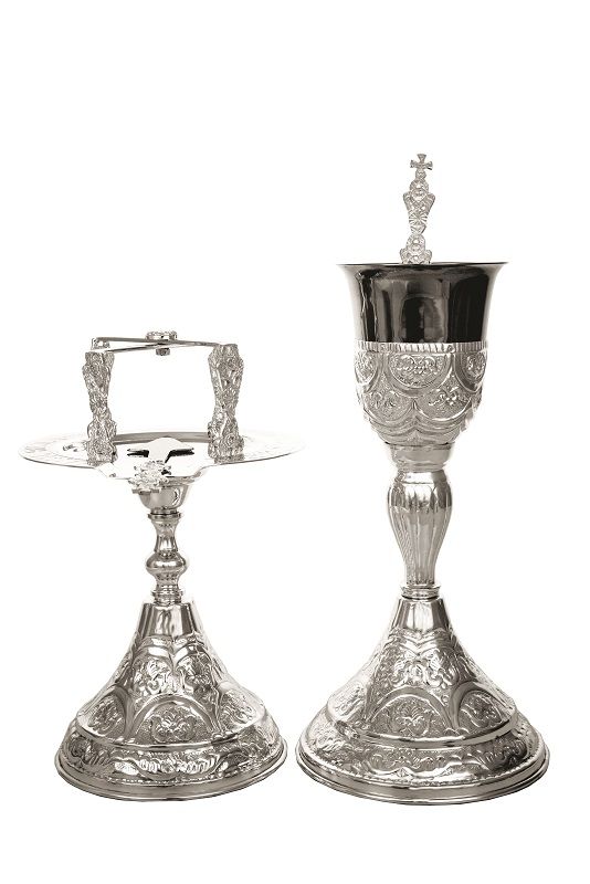 Δισκοπότηρο ορειχάλκινο ρώσικο σκαλιστό επάργυρο χωρητικότητας 400ml σε διάσταση : 31 x 16 εκ. Δισκάριο ορειχάλκινο ρώσικο σκαλιστό επάργυρο σε διάσταση : 20 x 18 εκ.