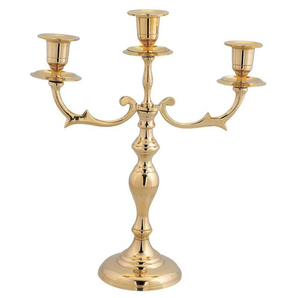 Κηροπήγιο ορειχάλκινο τρίκερο επίχρυσο σε διάσταση : 30 εκ.