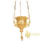 Καντήλι Εκκλησίας κρεμαστό ορειχάλκινο Βυζαντινό σκαλιστό επίχρυσο σε διάσταση : 13 x 13 εκ.