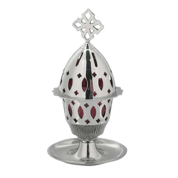 Καντήλι ορειχάλκινο διάτρητο επινικελωμένο με πιατάκι σε διάσταση : 20 εκ.