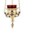 Καντήλι Εκκλησίας ορειχάλκινο κρεμαστό σκαλιστό επίχρυσο με σμαλτάκι σε διάσταση : 15 x 13 εκ.