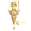 Καντήλι Εκκλησίας ορειχάλκινο κρεμαστό σκαλιστό μεσαίο δίχρωμο με περιστέρια σε διάσταση : 31 x 15 εκ.