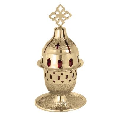 Καντήλι ορειχάλκινο λείο επίχρυσο με πιατάκι σε διάσταση : 20 εκ.