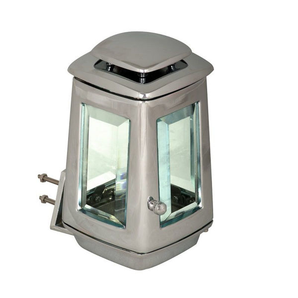 Καντήλι μνημείου από αλουμίνιο επίτοιχο με κρύσταλλο 8 χιλ. σε χρώμα γυαλιστερό χρώμιο και διάσταση : 17 x 14 εκ.