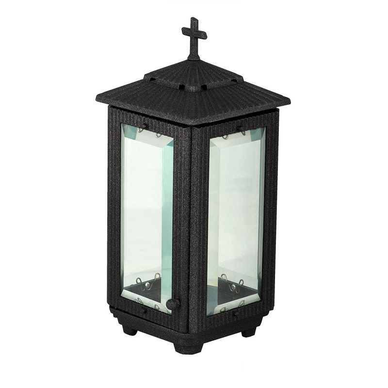 Καντήλι μνημείου από αλουμίνιο τετράπλευρο σκαλιστό με κρύσταλλο 8 χιλ. σε χρώμα μαύρο-ασημί και διάσταση : 30,5 x 13 εκ.