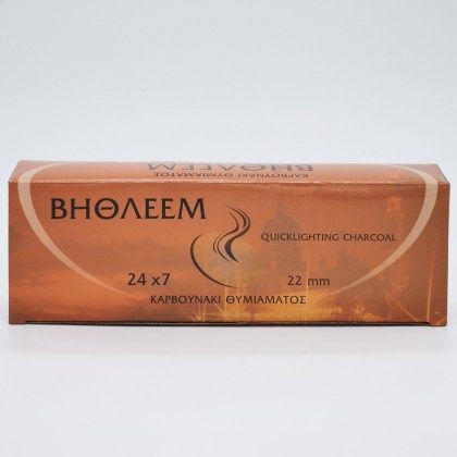 Καρβουνάκι Βηθλεέμ μικρό καφέ. Το κουτί περιέχει 24 μασουράκια. Το κάθε μασουράκι περιέχει 7 καρβουνάκια.