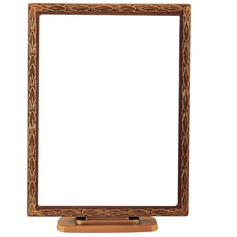 Κορνίζα μνημείου από ορείχαλκο (αδιάβλητο στις καιρικές συνθήκες) παραλληλόγραμμη όρθια με βάση, φύλλα σε χρώμα οξυντέ και διάσταση : 18 x 24 εκ. ΣΗΜΕΙΩΣΗ: Οι κορνίζες μνημείου ΔΕΝ διαθέτουν τζάμι.