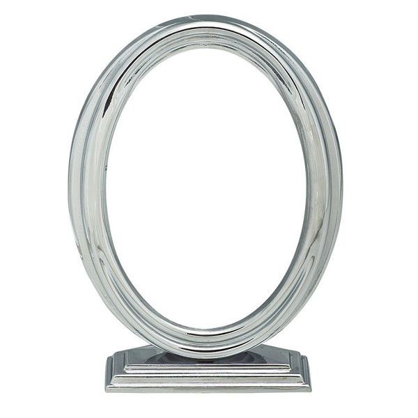 Κορνίζα μνημείου από ορείχαλκο (αδιάβλητο στις καιρικές συνθήκες) νέου τύπου οβάλ όρθια με βάση σε χρώμα γυαλιστερό χρώμιο και διάσταση : 11 x 15 εκ. ΣΗΜΕΙΩΣΗ: Οι κορνίζες μνημείου ΔΕΝ διαθέτουν τζάμι.