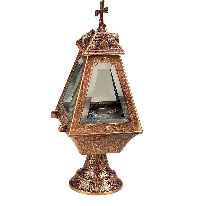Καντήλι μνημείου από ορείχαλκο (αδιάβλητο στις καιρικές συνθήκες) σε σχήμα πυραμίδας, χρώμα οξυντέ και διάσταση : 30,5 x 13 εκ.