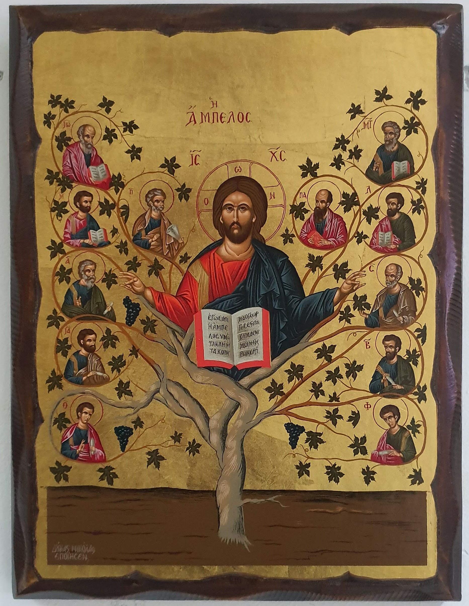 Άμπελος σε πεπαλαιωμένο πελεκυτό ξύλο πεύκο σε καμβά με φύλλο χρυσού και διάσταση : 20 x 16 εκ.
