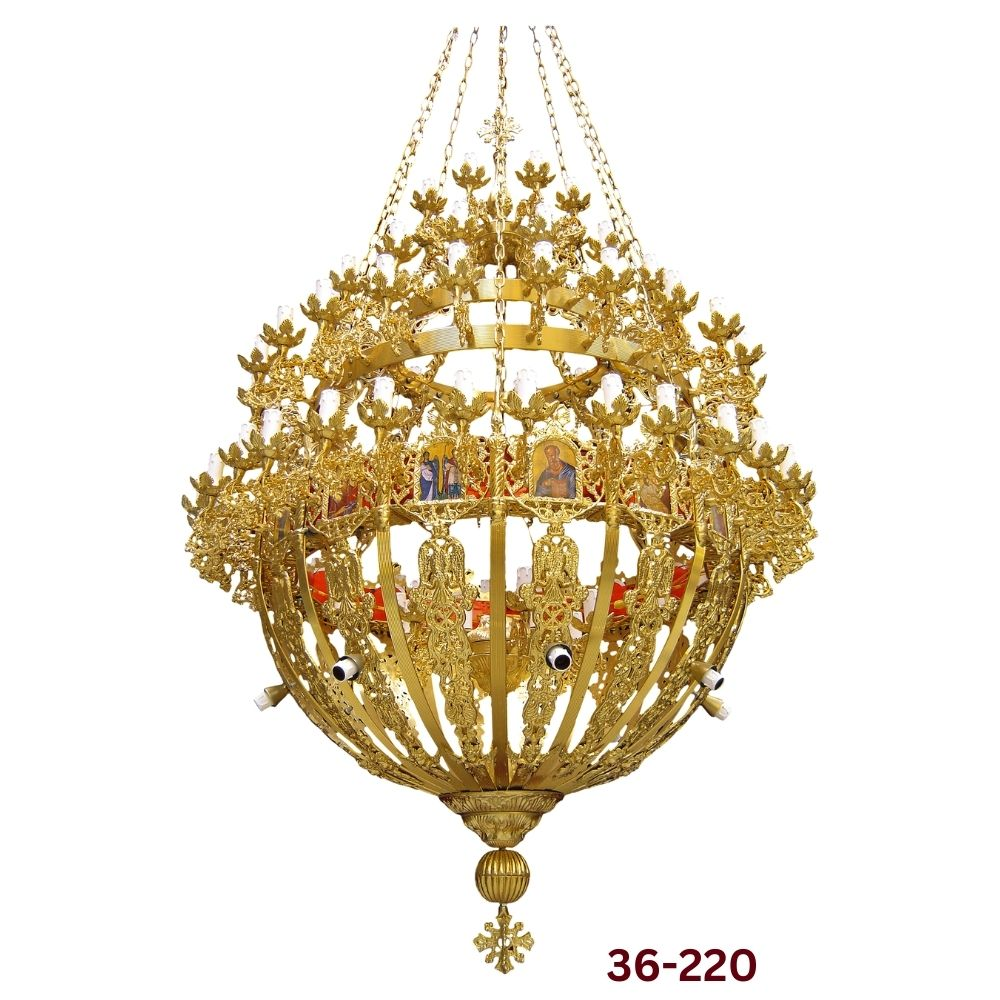 Πολυέλαιος αλουμινίου με εικόνα αγίου με 120 φώτα σε 2 αποχρώσεις και διάσταση : 200 x 130 εκ.