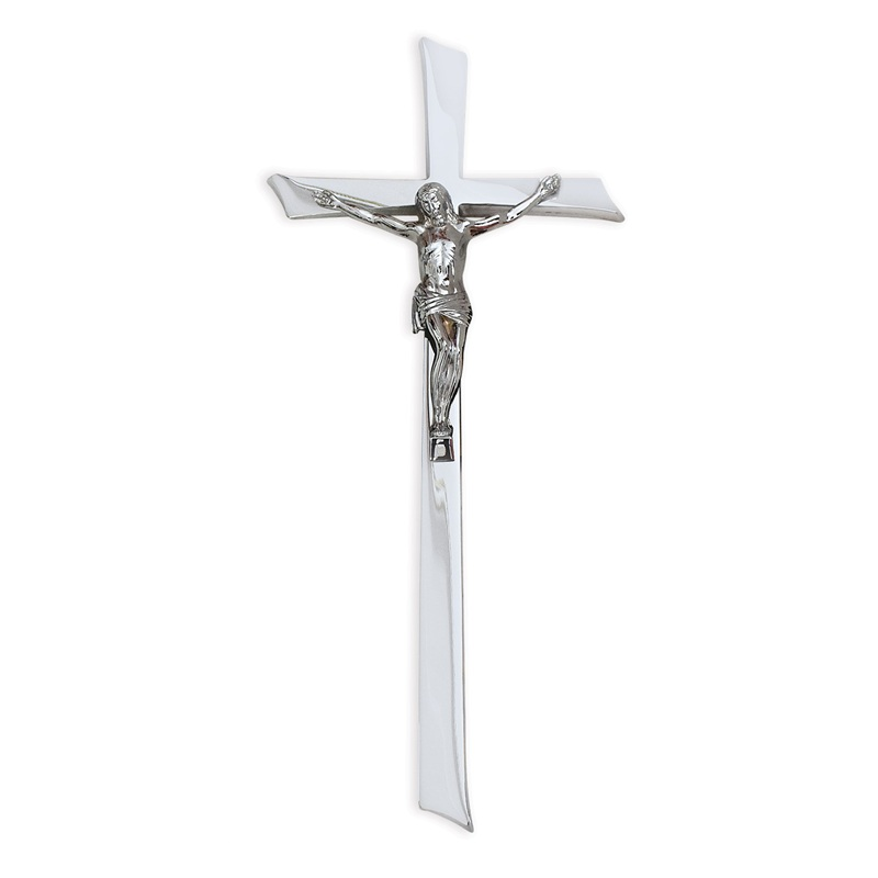 Σταυρός μνημείου από ορείχαλκο (αδιάβλητο στις καιρικές συνθήκες) με εσταυρωμένο σε χρώμα γυαλιστερό χρώμιο και διάσταση : 45 x 20 εκ.