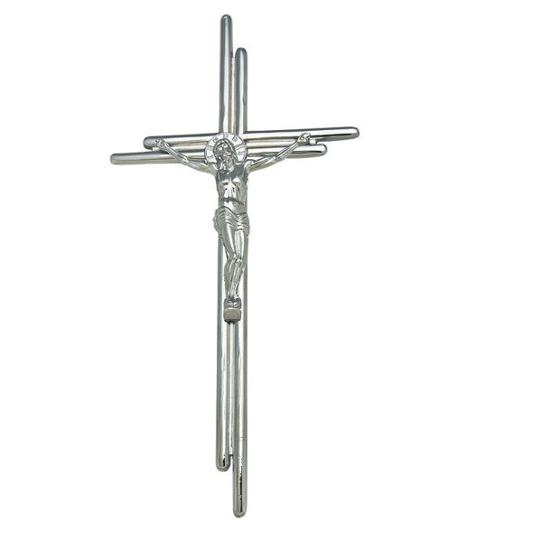 Σταυρός μνημείου από ορείχαλκο (αδιάβλητο στις καιρικές συνθήκες) με εσταυρωμένο σε χρώμα γυαλιστερό χρώμιο και διάσταση : 38 x 18,5 εκ.