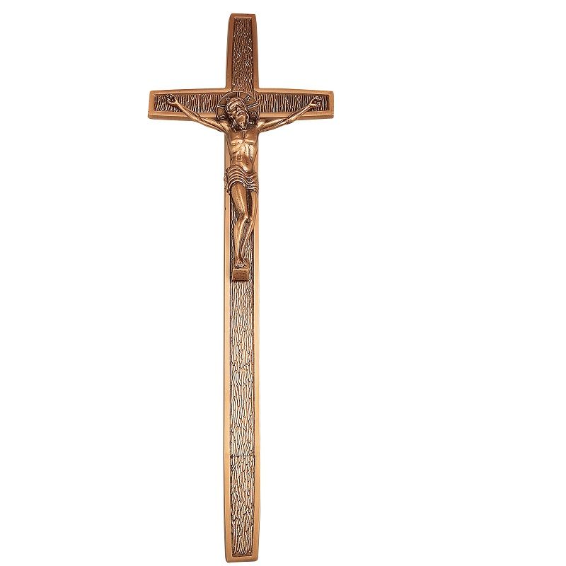 Σταυρός μνημείου από ορείχαλκο (αδιάβλητο στις καιρικές συνθήκες) με εσταυρωμένο σε χρώμα οξυντέ και διάσταση : 57,5 x 20 εκ.