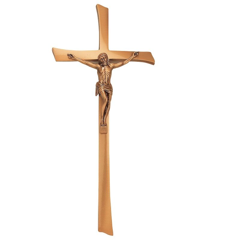Σταυρός μνημείου από ορείχαλκο (αδιάβλητο στις καιρικές συνθήκες) με εσταυρωμένο σε χρώμα οξυντέ και διάσταση : 45 x 20 εκ.
