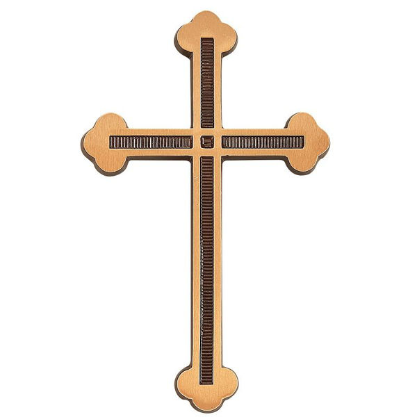 Σταυρός μνημείου από ορείχαλκο (αδιάβλητο στις καιρικές συνθήκες) χωρίς εσταυρωμένο σε χρώμα οξυντέ και διάσταση : 20 x 13 εκ.
