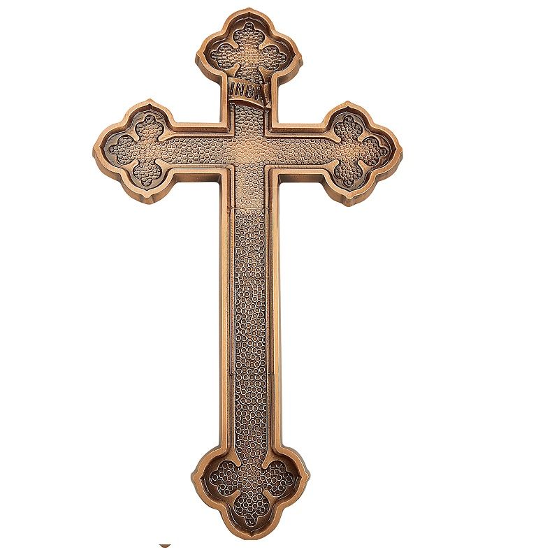 Σταυρός μνημείου από ορείχαλκο (αδιάβλητο στις καιρικές συνθήκες) χωρίς εσταυρωμένο σε χρώμα οξυντέ και διάσταση : 45 x 24 εκ.