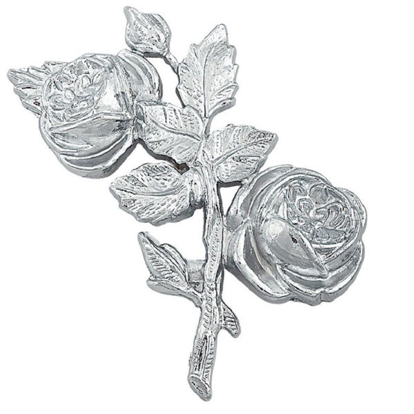 Τριαντάφυλλο δεξί από ορείχαλκο (αδιάβλητο στις καιρικές συνθήκες) σε χρώμα γυαλιστερό χρώμιο και διάσταση : 34 x 30 εκ.