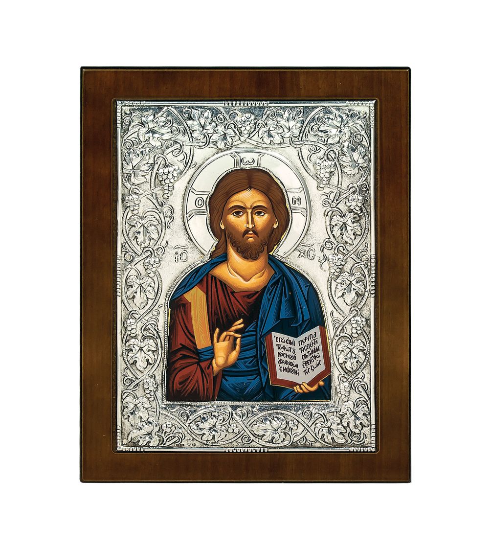 Χριστός αγιογραφία με φύλλο ασημιού και βάση σε διάσταση : 23 x 17 εκ.